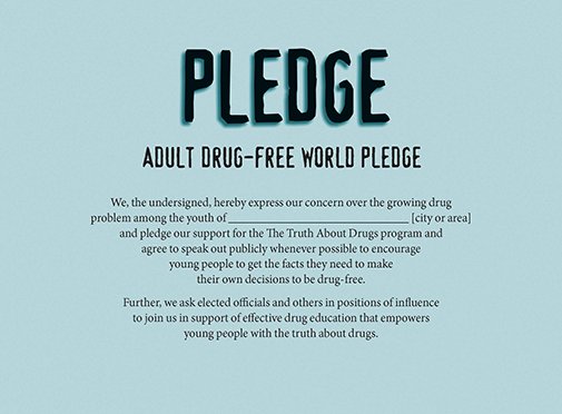 Tandatangani ikrar dan awalilah jalan menuju kehidupan yang bebas narkoba. Bekerja sama dengan orang lain untuk menyebarluaskan kebenaran tentang narkoba.