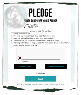 Sign the pledge and lead the way to a drug-free life. Work with others to help spread the truth about drugs.
