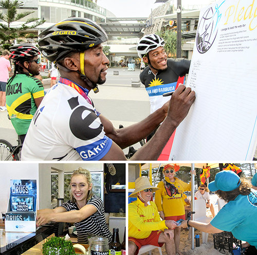 Karena Gold Coast, Australia, menjadi tuan rumah Pesta Olahraga Persemakmuran, maka tim Dunia Bebas Narkoba berada di sana untuk menjadikannya bebas narkoba.