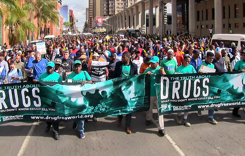 Telah terbukti bahwa sebagian besar kekerasan terhadap perempuan dan anak-anak dipicu oleh narkoba, itulah sebabnya Dunia Bebas Narkoba bergabung dengan '100 Men March' di Pretoria, Afrika Selatan.